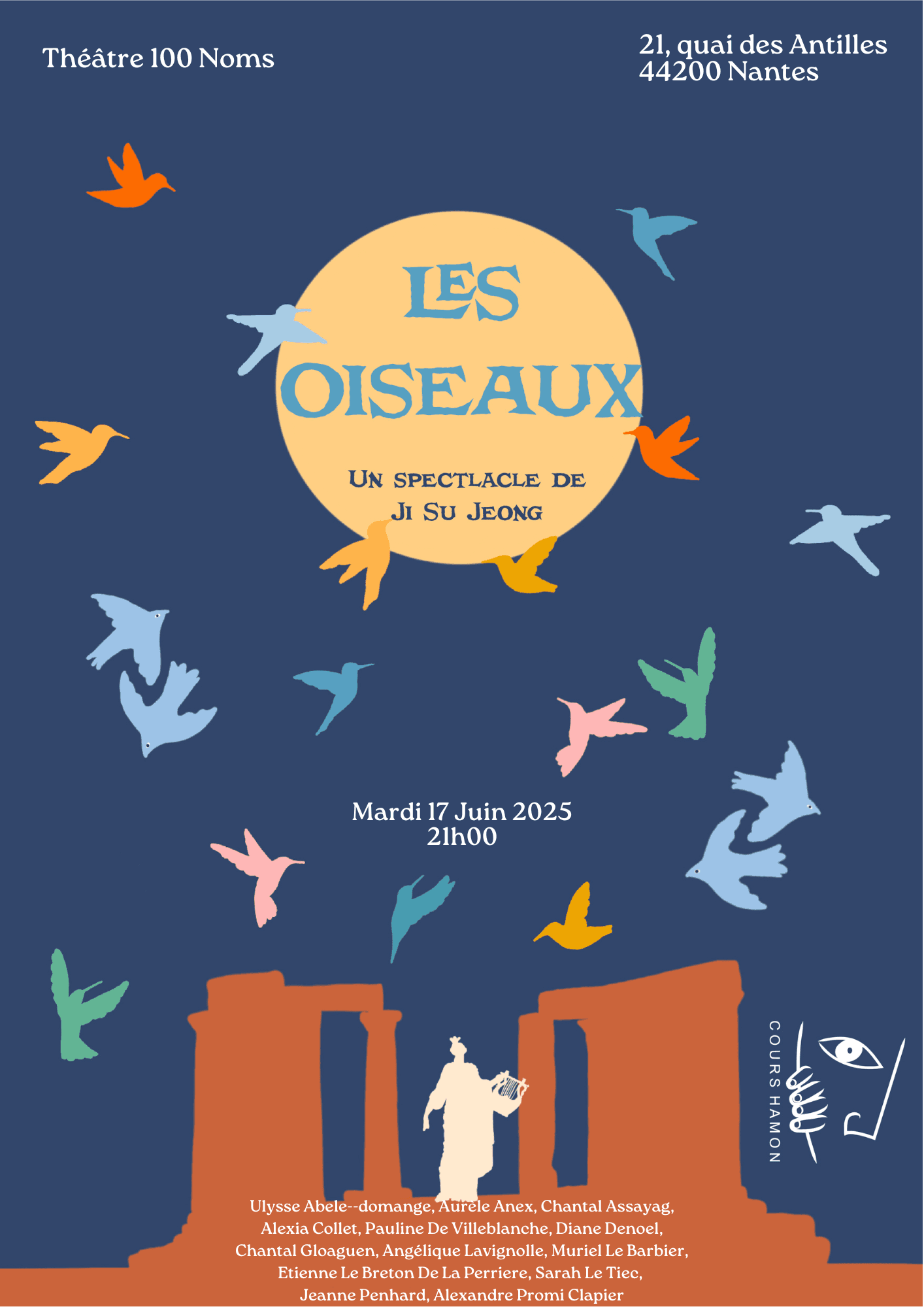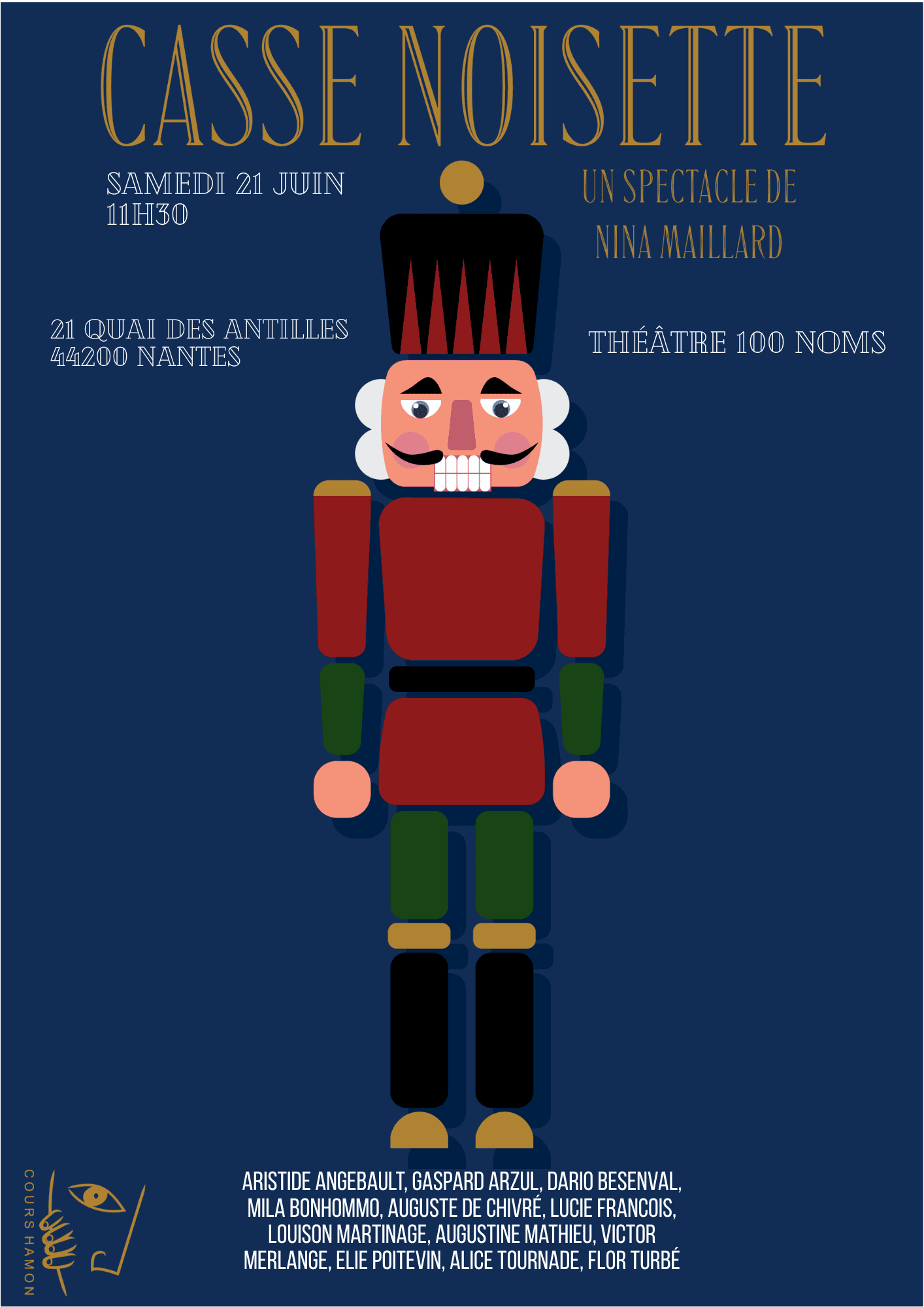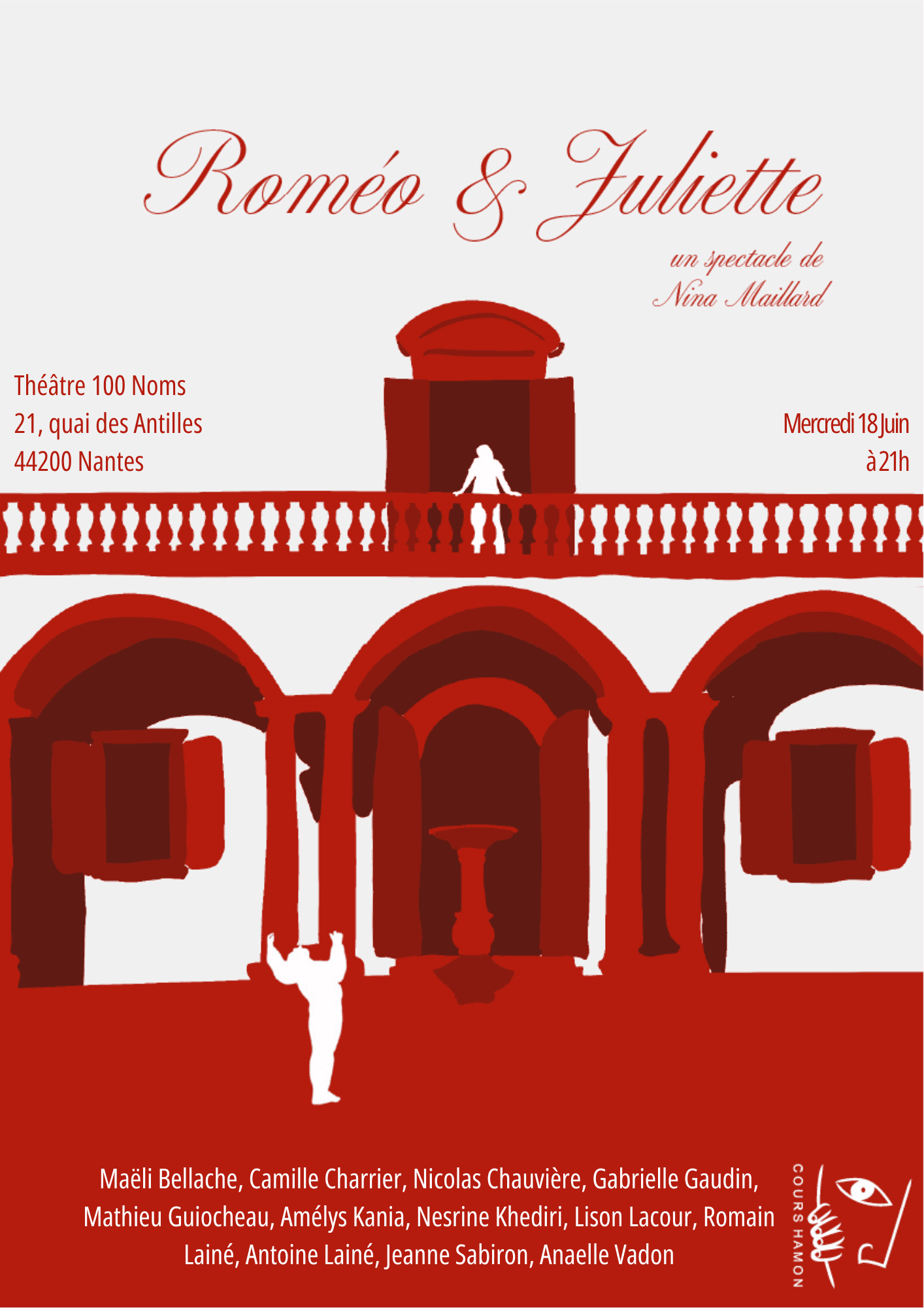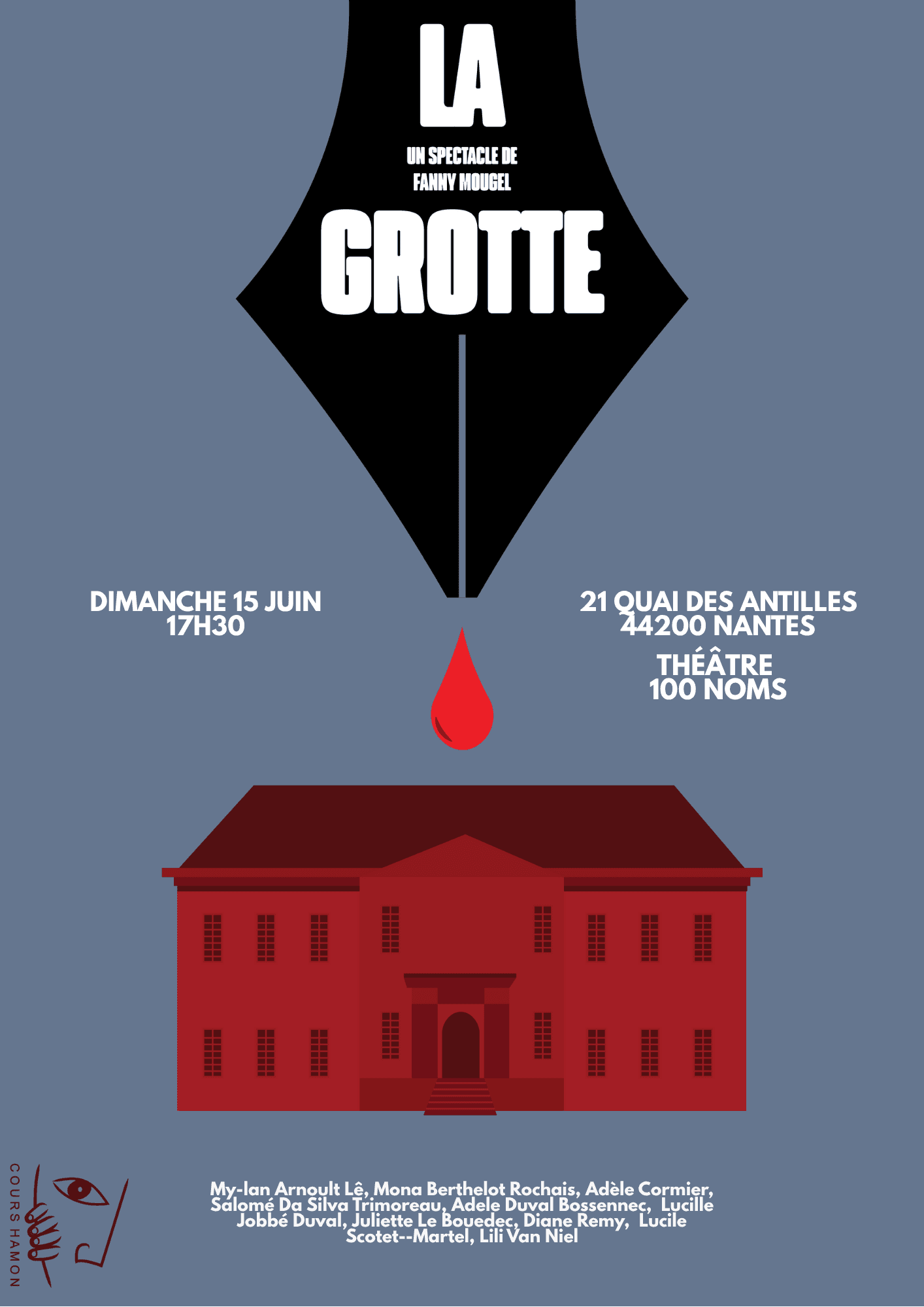 Implantés à Nantes, les Cours de Théâtre Hamon sont une école reconnue pour leur exigence artistique et leur approche humaine . L’enseignement y conjugue rigueur technique — travail de la voix, de la posture, de la diction et du souffle — et liberté expressive à travers le texte, l’improvisation et la création collective . Ouverts à tous les niveaux, les ateliers visent à développer la présence scénique, l’authenticité du jeu et la confiance en soi, dans un esprit de partage et d’exploration artistique .