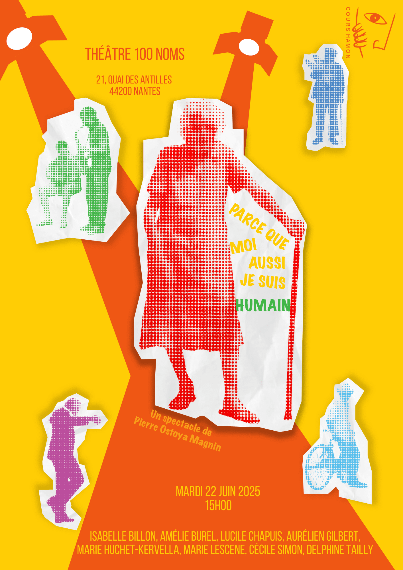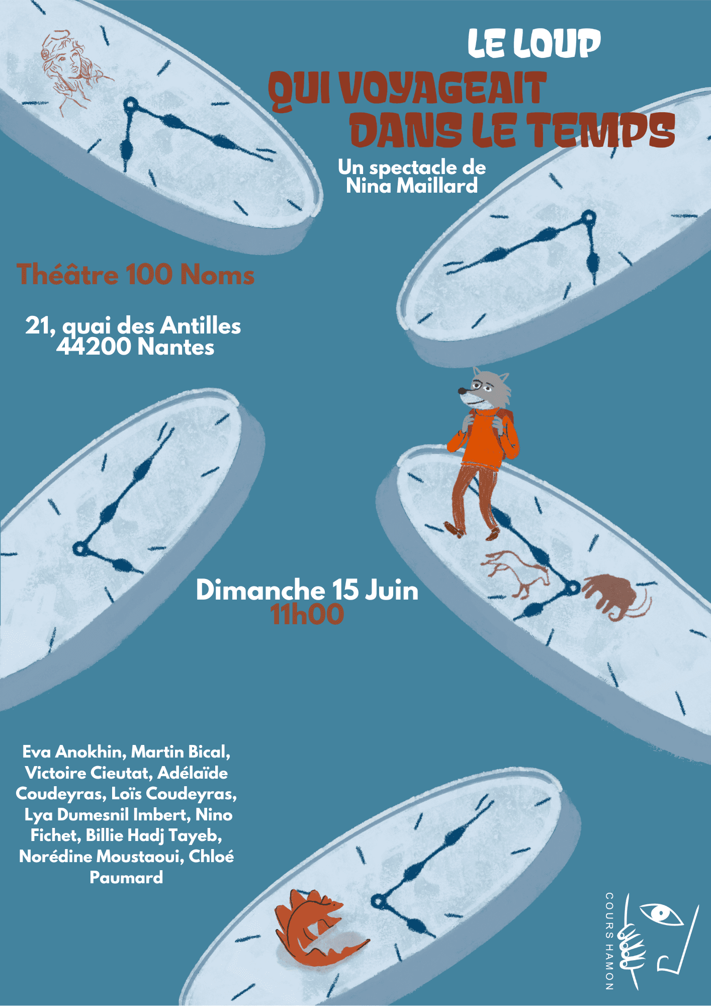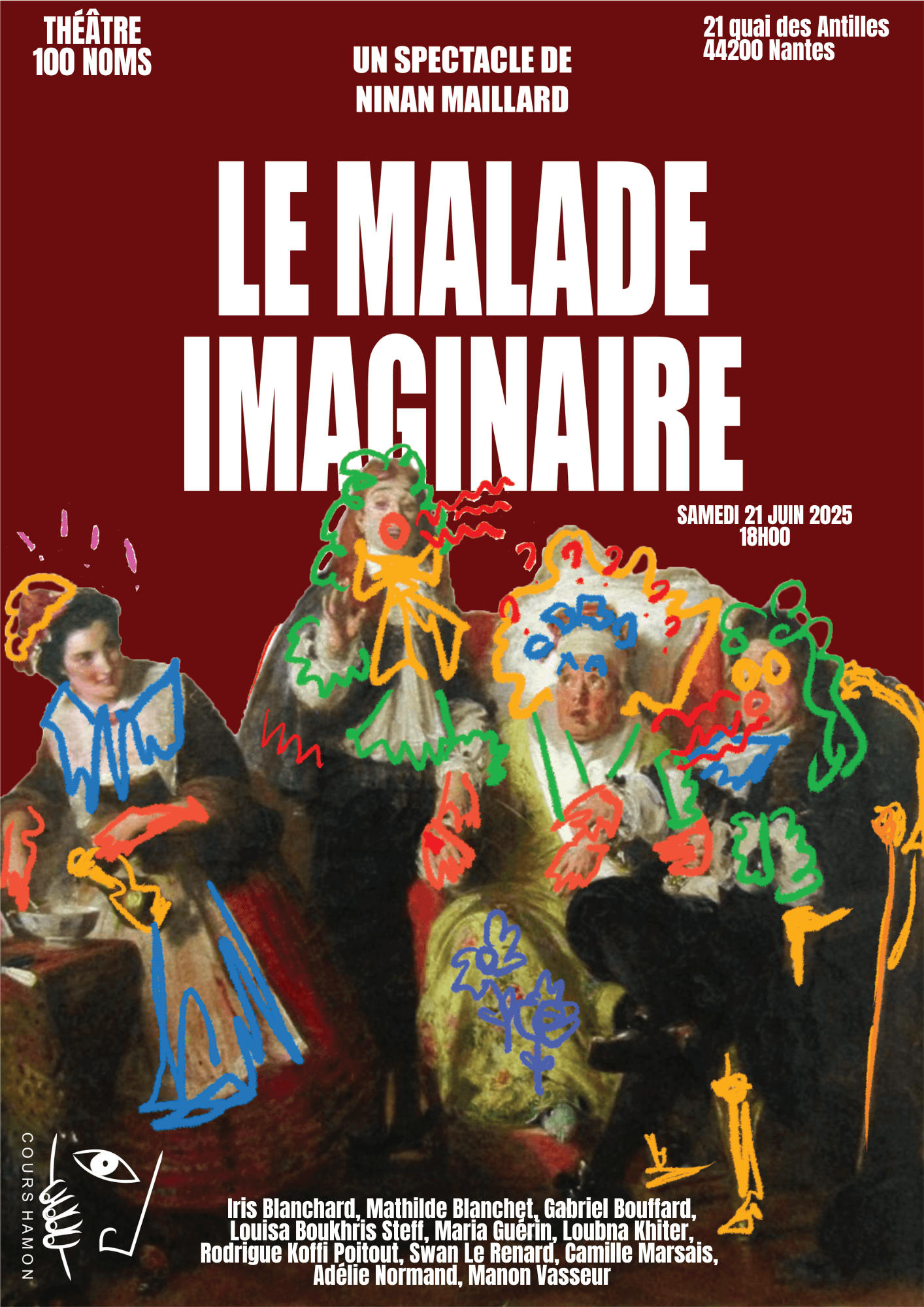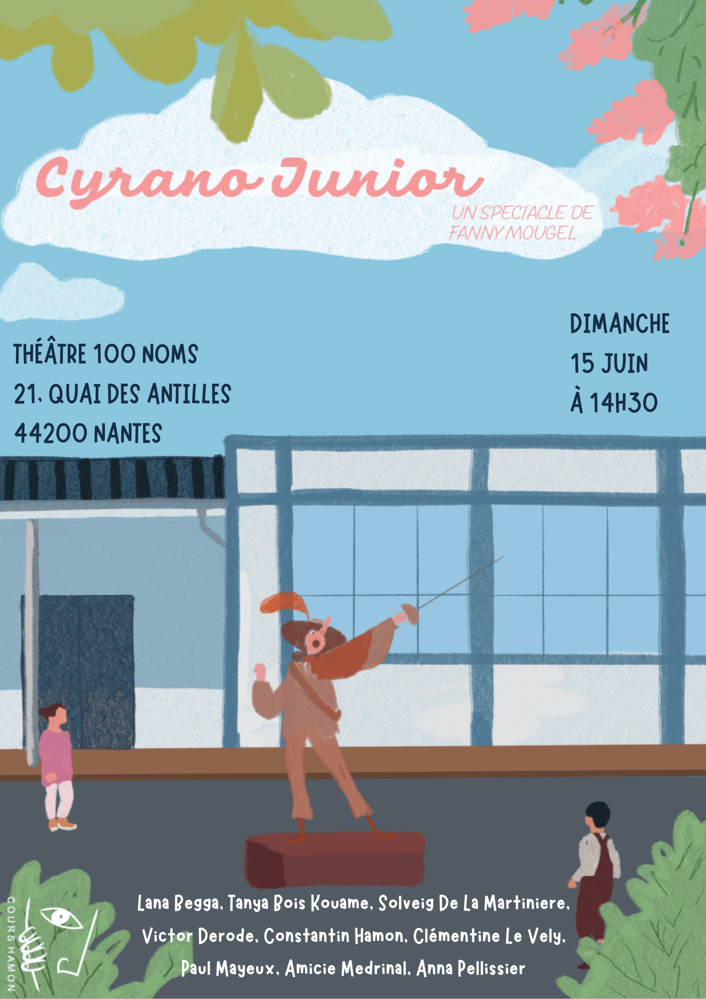 Implantés à Nantes, les Cours de Théâtre Hamon sont une école reconnue pour leur exigence artistique et leur approche humaine . L’enseignement y conjugue rigueur technique — travail de la voix, de la posture, de la diction et du souffle — et liberté expressive à travers le texte, l’improvisation et la création collective . Ouverts à tous les niveaux, les ateliers visent à développer la présence scénique, l’authenticité du jeu et la confiance en soi, dans un esprit de partage et d’exploration artistique .