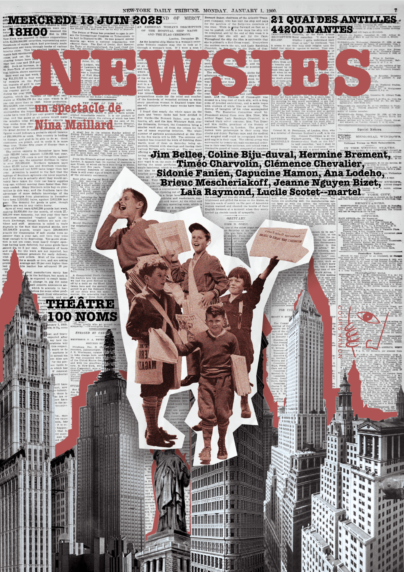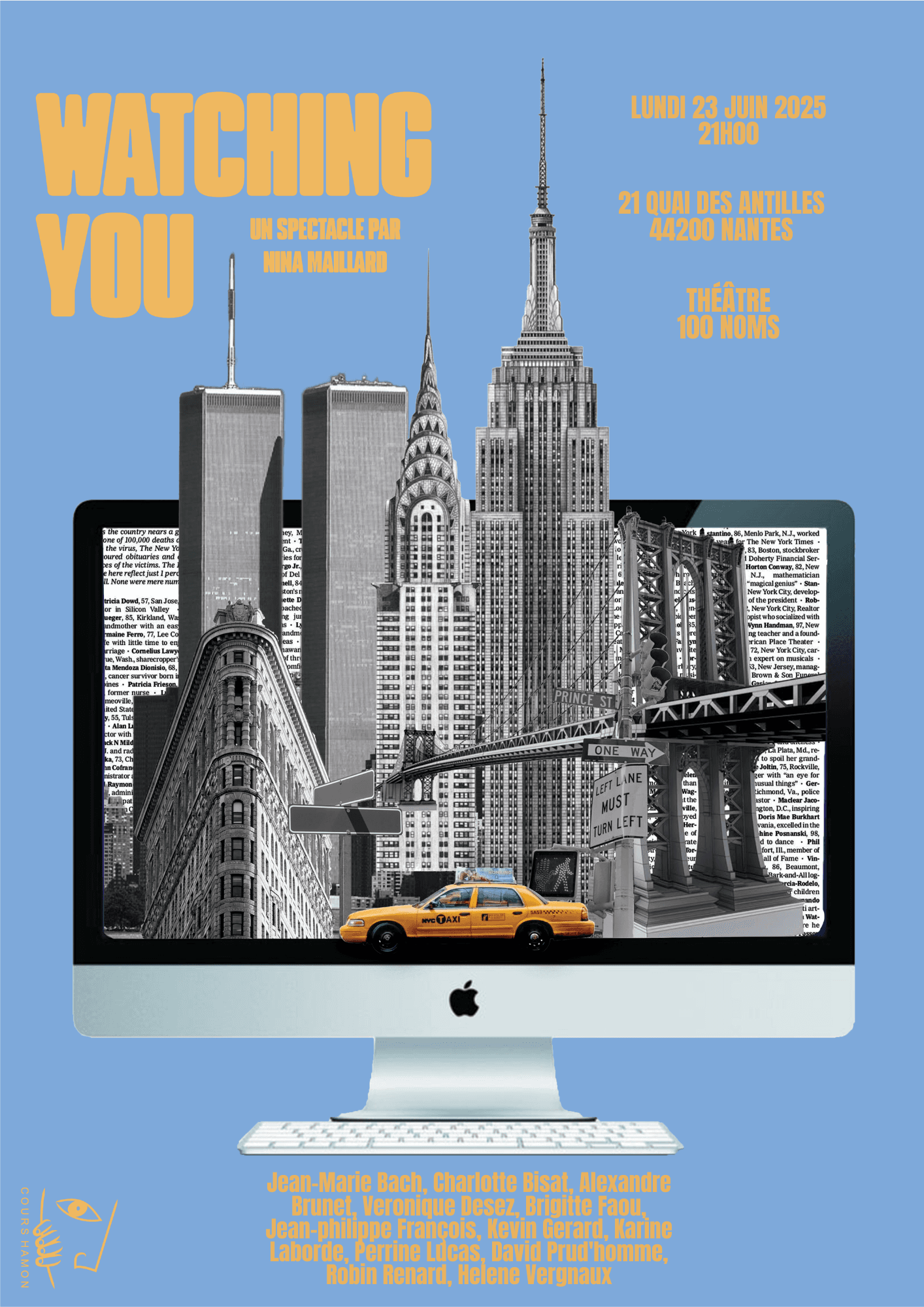 Mes sources d’inspiration proviennent aussi bien de mon environnement quotidien, affiches dans les rues, vitrines ou librairies, que de supports contemporains tels que les réseaux sociaux et les magazines spécialisés. Cette recherche visuelle m’a permis d’ajuster mes compositions en fonction du ton et de l’univers de chaque spectacle.